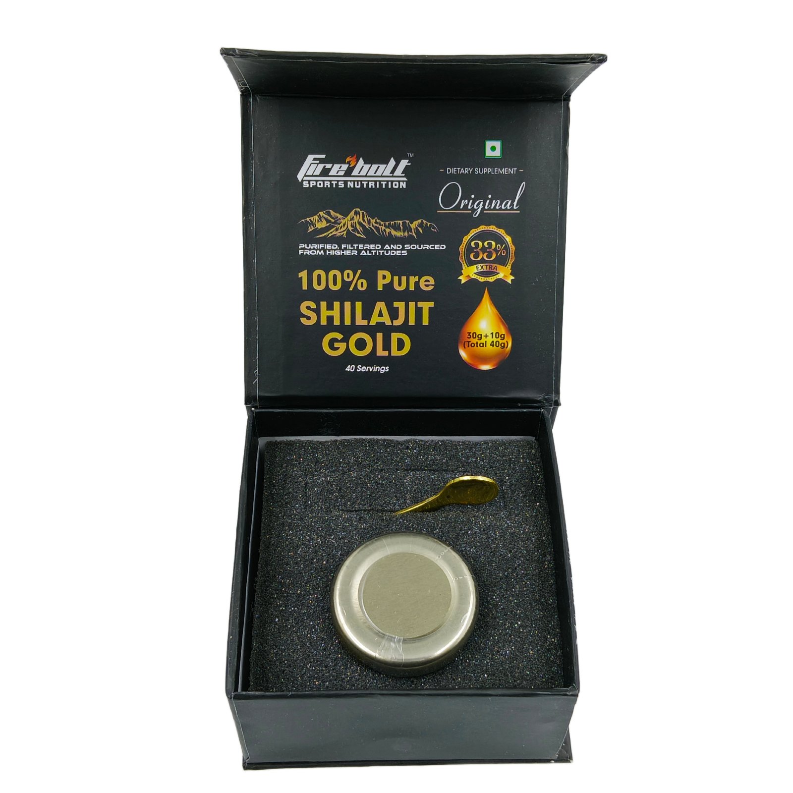 Firebolt’s 100% Pure Shilajit Gold is a premium dietary supplement made from pure shilajit resin, known for its powerful health-boosting properties. It helps strengthen immunity, reduce stress and anxiety, and support overall vitality. As a natural rejuvenator, shilajit aids in detoxification, promotes stamina and strength, and may help slow the ageing process. Its rich antioxidant and antimicrobial properties further enhance the body’s defense system, making it an ideal addition to your daily wellness routine.